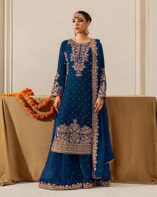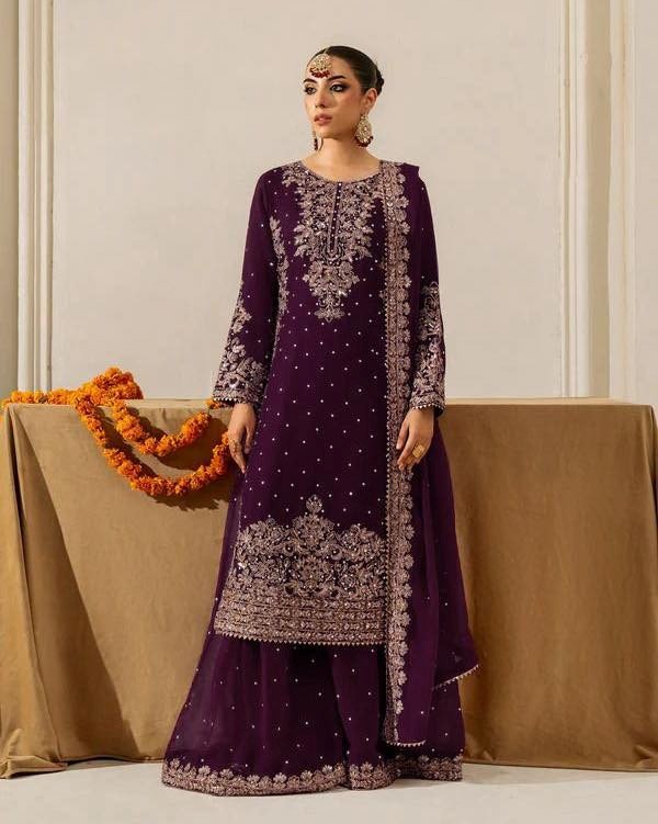 Includes Top, Plazzo, and Dupatta, fully stitched and ready to wear — perfect for festive and party occasions.