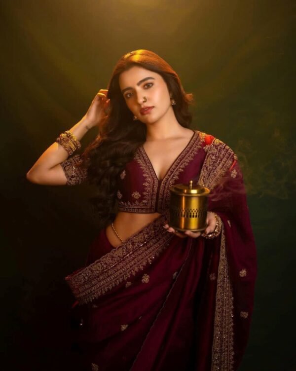 Exclusive Partywear Organza Saree Saree : Pure Soft silk organza saree with sequence & thread work in allover body & heavy embroidery border Length : 5.5 meters Blouse : soft Silk fabric 0.80 meter (unstich) Available only in RED Colour Weight :- 700gm