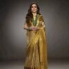 Nita Ambani–inspired saree in rich zari weaving with golden flower designs. Includes a matching running blouse. Saree cut: 6.30 meters